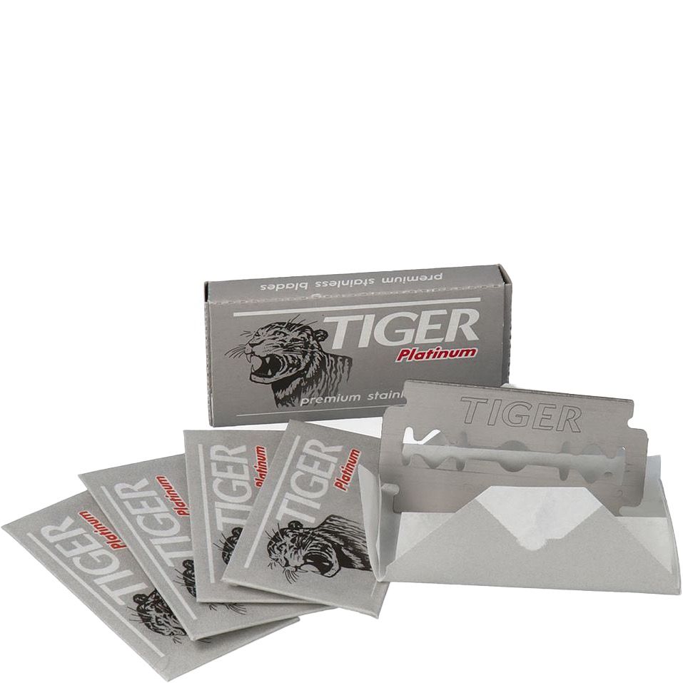 Tiger Platinum blades worden door de voormalige producent van de Astra-blades uit Tsjechië geproduceerd. De volledig Duitse productielijn draagt bij tot de kwaliteit van deze double edge blades. Deze platinum en teflon gecoate blades bieden de gebruiker vele voordelen die bijdragen tot een comfortabel gladde scheerbeleving met een minimum aan weerstand en irritatie. Deze blades behouden lang hun scherpte.